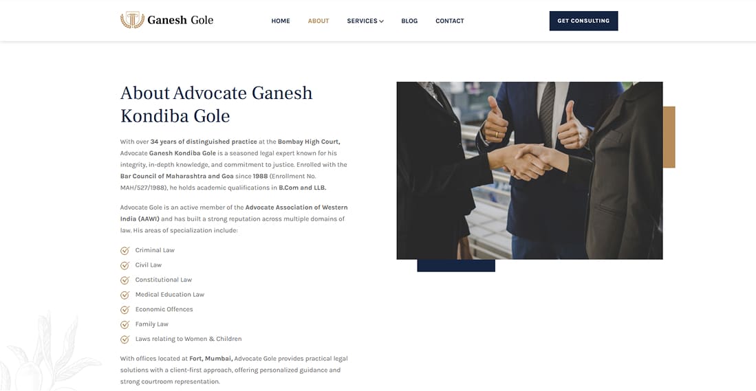 At Ganesh Gole Associates, we deliver effective and efficient legal representation while upholding the highest standards of integrity, ethics, and professionalism.